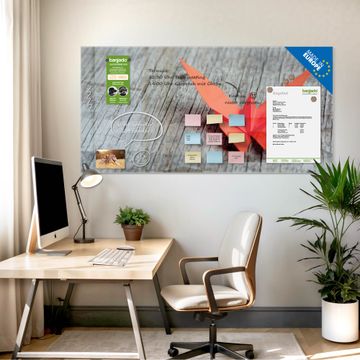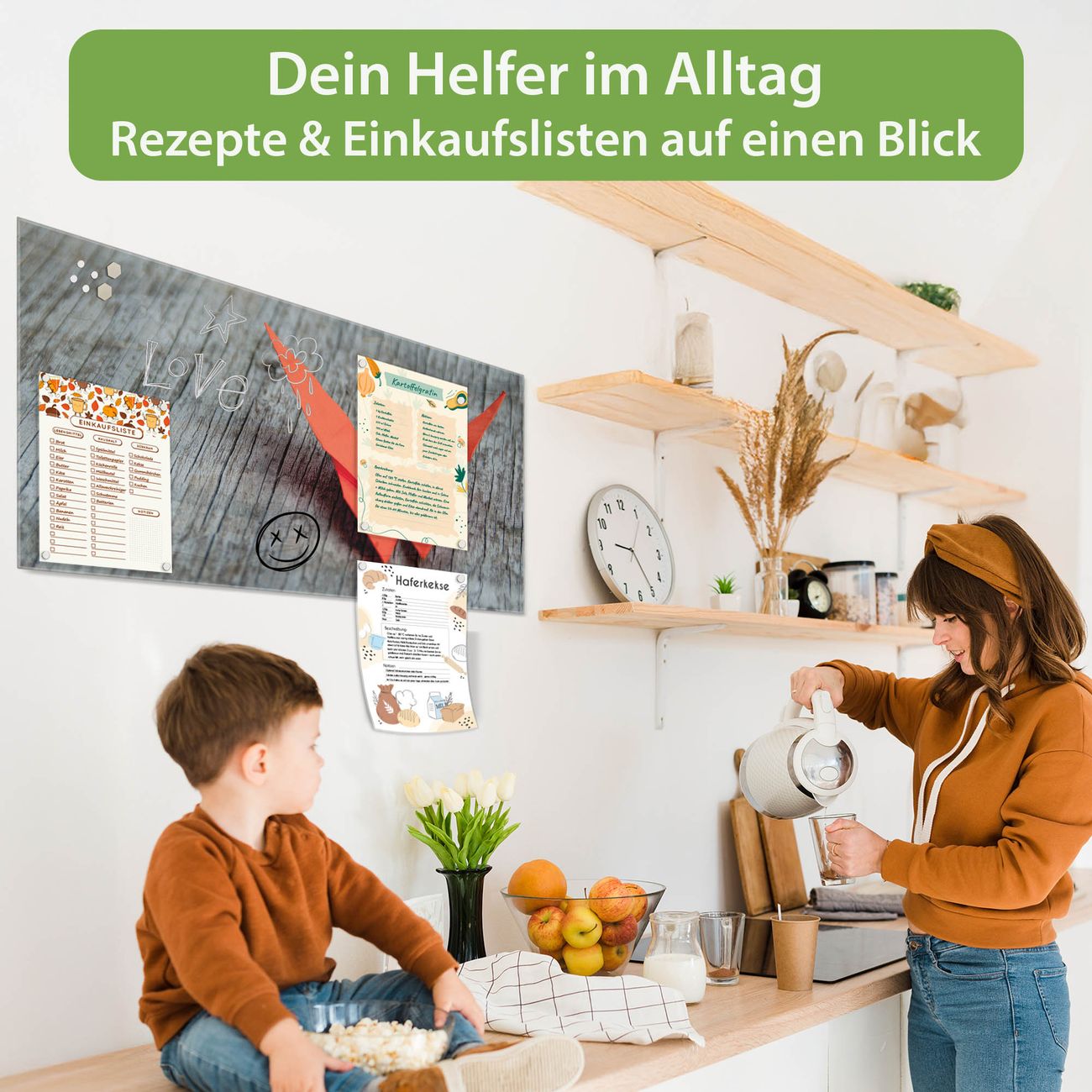 Auf der glatten Glasoberfläche lassen sich Termine, Rezepte oder Notizen ganz einfach mit Kreidestiften festhalten und rückstandslos entfernen. Starke Neodym-Magnete halten Ihre wichtigsten Erinnerungen sicher an Ort und Stelle. So entsteht Ihre ganz persönliche Ideenwand - jeden Tag neu.