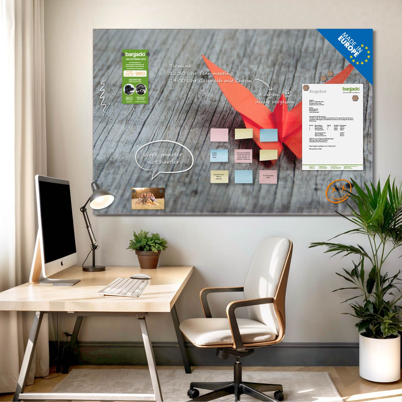 Jede Glas Magnettafel wird in unserer Werkstatt von Hand gefertigt und sorgfältig geprüft. So erhalten Sie ein echtes Qualitätsprodukt, das Funktion und Ästhetik perfekt vereint.?? Warum banjado?