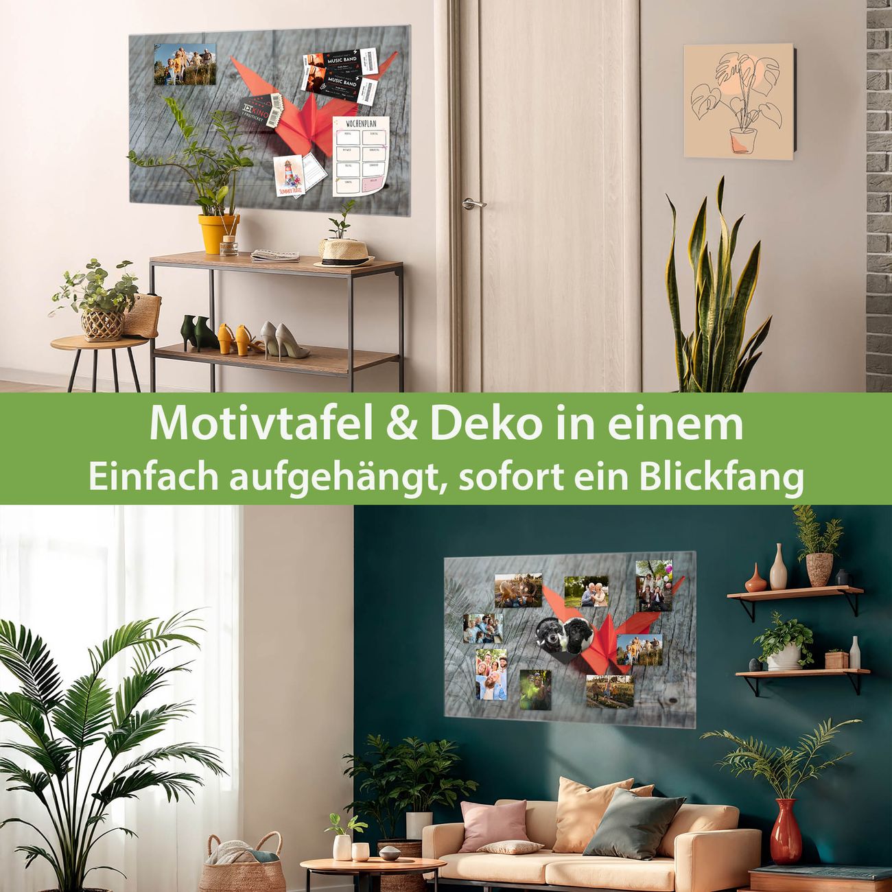 Die banjado Glas Magnettafel mit dem Motiv Motiv Origami Schmetterling verbindet Funktionalität mit Stil. Sie ersetzt das Zettelchaos durch klare Strukturen und bringt dabei eine warme, natürliche Atmosphäre in Ihr Zuhause. Ob im Büro, in der Küche oder im Eingangsbereich - dieses Design-Board zieht Blicke an und sorgt für Ordnung mit Charakter.