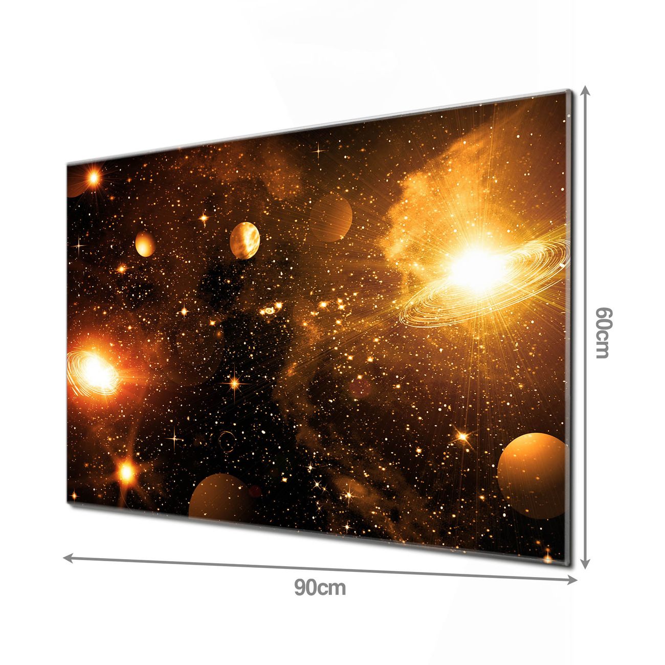 Material  4mm Sicherheitsglas mit Metallrückwand Eigenschaften  beschreibbar, magnetisch, kratzfest Maße  90x60x0,6cm, 8,10kg schwer Motiv  Nummer 10419 Outer Space Zubehör  inklusive 4 Neodym-Magnete