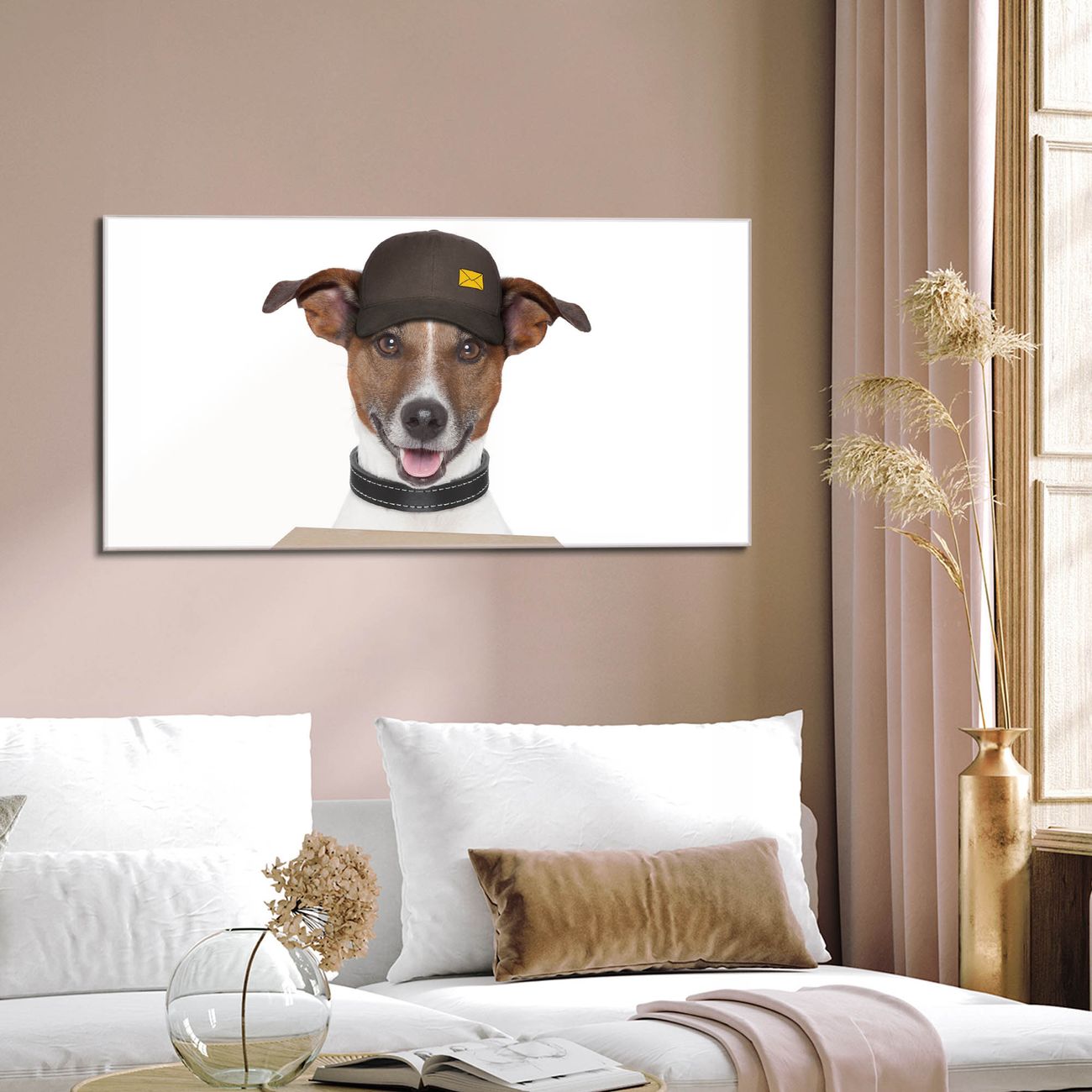 Glas Magnettafel im Querformat Motiv Paketdienst Jack Russel