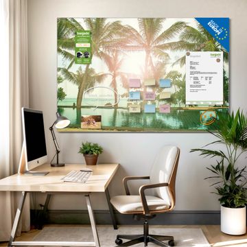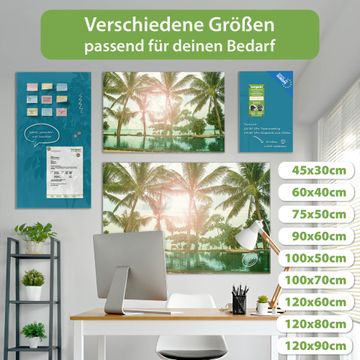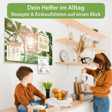 Die banjado Glas Magnettafel mit dem Motiv Motiv Palmen verbindet Funktionalität mit Stil. Sie ersetzt das Zettelchaos durch klare Strukturen und bringt dabei eine warme, natürliche Atmosphäre in Ihr Zuhause. Ob im Büro, in der Küche oder im Eingangsbereich - dieses Design-Board zieht Blicke an und sorgt für Ordnung mit Charakter.