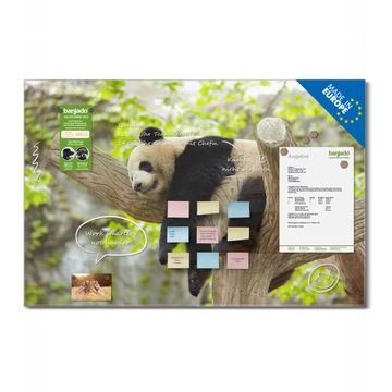 Material: 4mm Sicherheitsglas mit Metallrückwand Eigenschaften: beschreibbar, magnetisch, kratzfest Maße: 120x80x0,6cm, 14,40kg schwer Motiv Nummer 10493 Panda Zubehör: inklusive 4 Neodym-Magnete