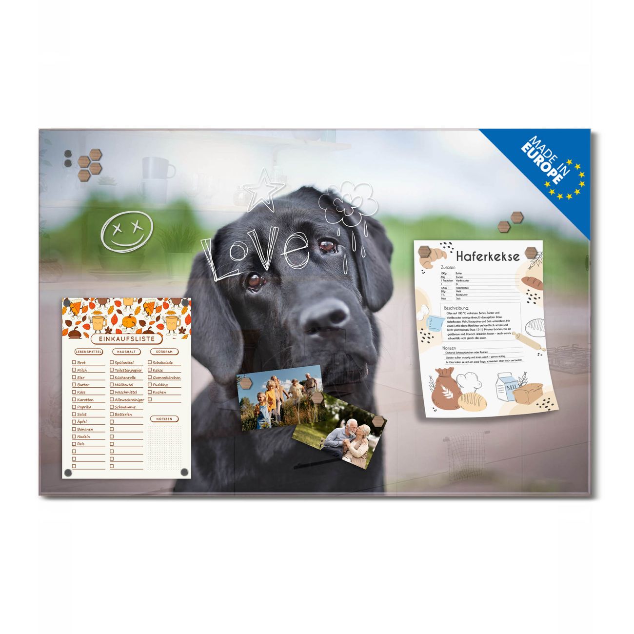 Material: 4mm Sicherheitsglas mit Metallrückwand Eigenschaften: beschreibbar, magnetisch, kratzfest Maße: 75x50x0,6cm, 5,63kg schwer Motiv Nummer 12382 Paolo Zubehör: inklusive 4 Neodym-Magnete