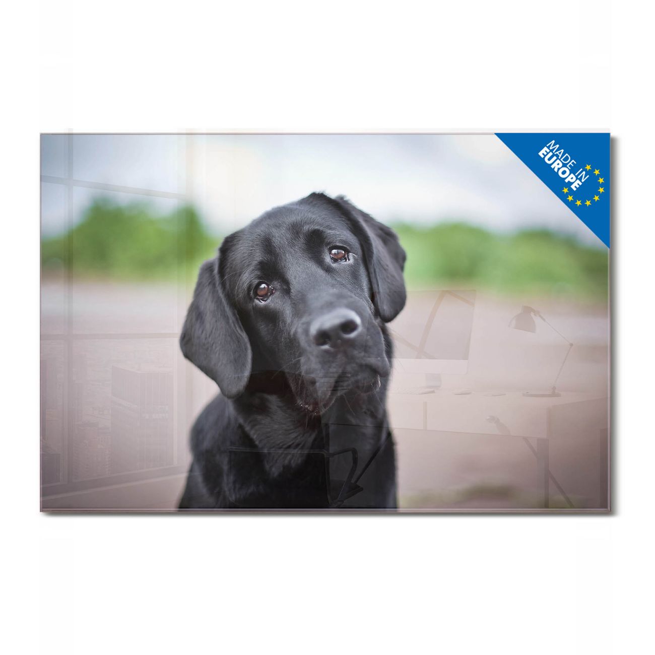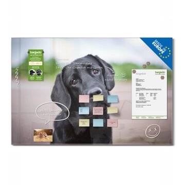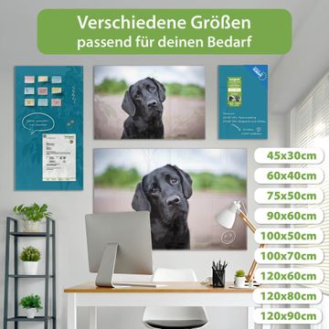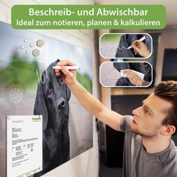 Material: 4mm Sicherheitsglas mit Metallrückwand Eigenschaften: beschreibbar, magnetisch, kratzfest Maße: 90x60x0,6cm, 8,10kg schwer Motiv Nummer 12382 Paolo Zubehör: inklusive 4 Neodym-Magnete