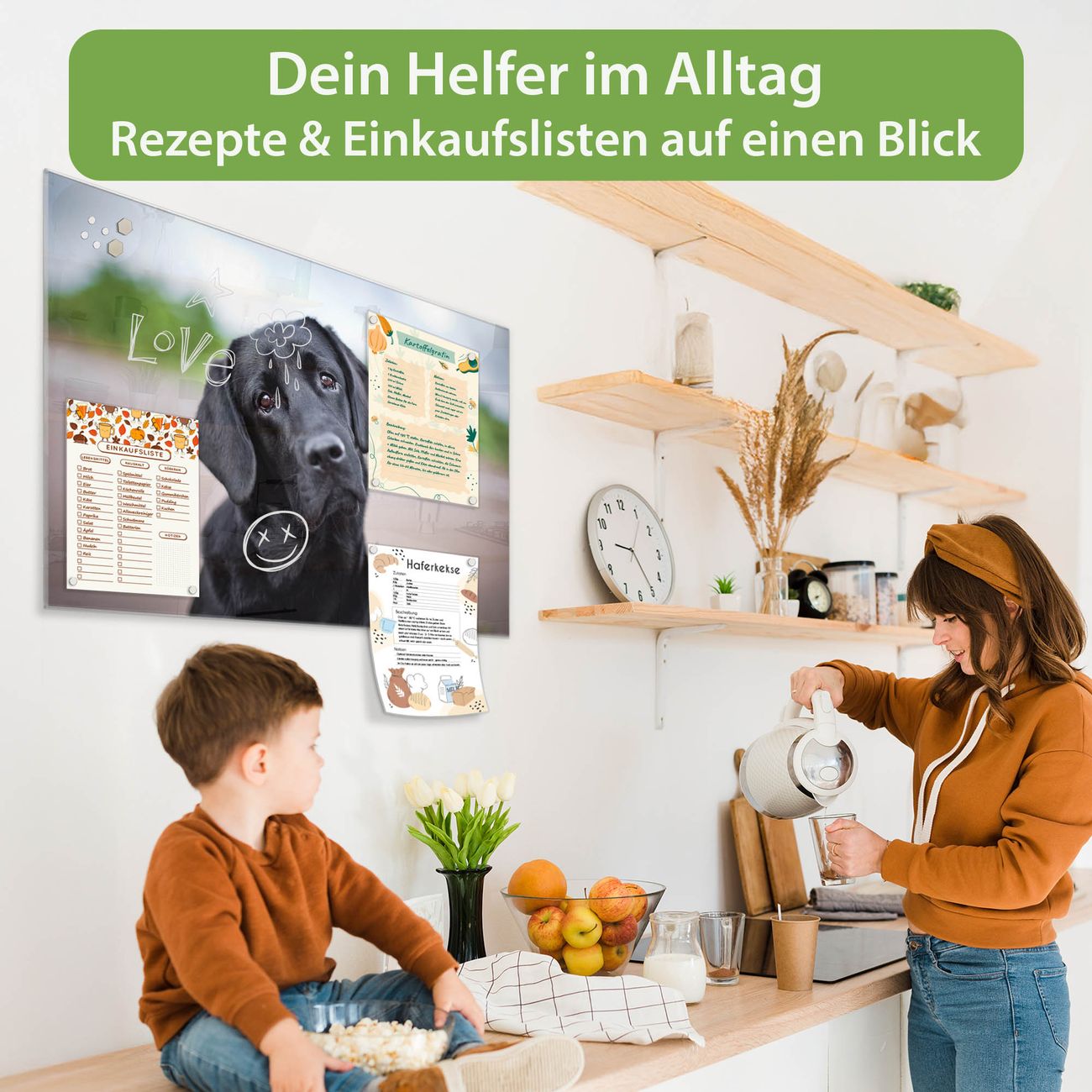 Auf der glatten Glasoberfläche lassen sich Termine, Rezepte oder Notizen ganz einfach mit Kreidestiften festhalten und rückstandslos entfernen. Starke Neodym-Magnete halten Ihre wichtigsten Erinnerungen sicher an Ort und Stelle. So entsteht Ihre ganz persönliche Ideenwand - jeden Tag neu.