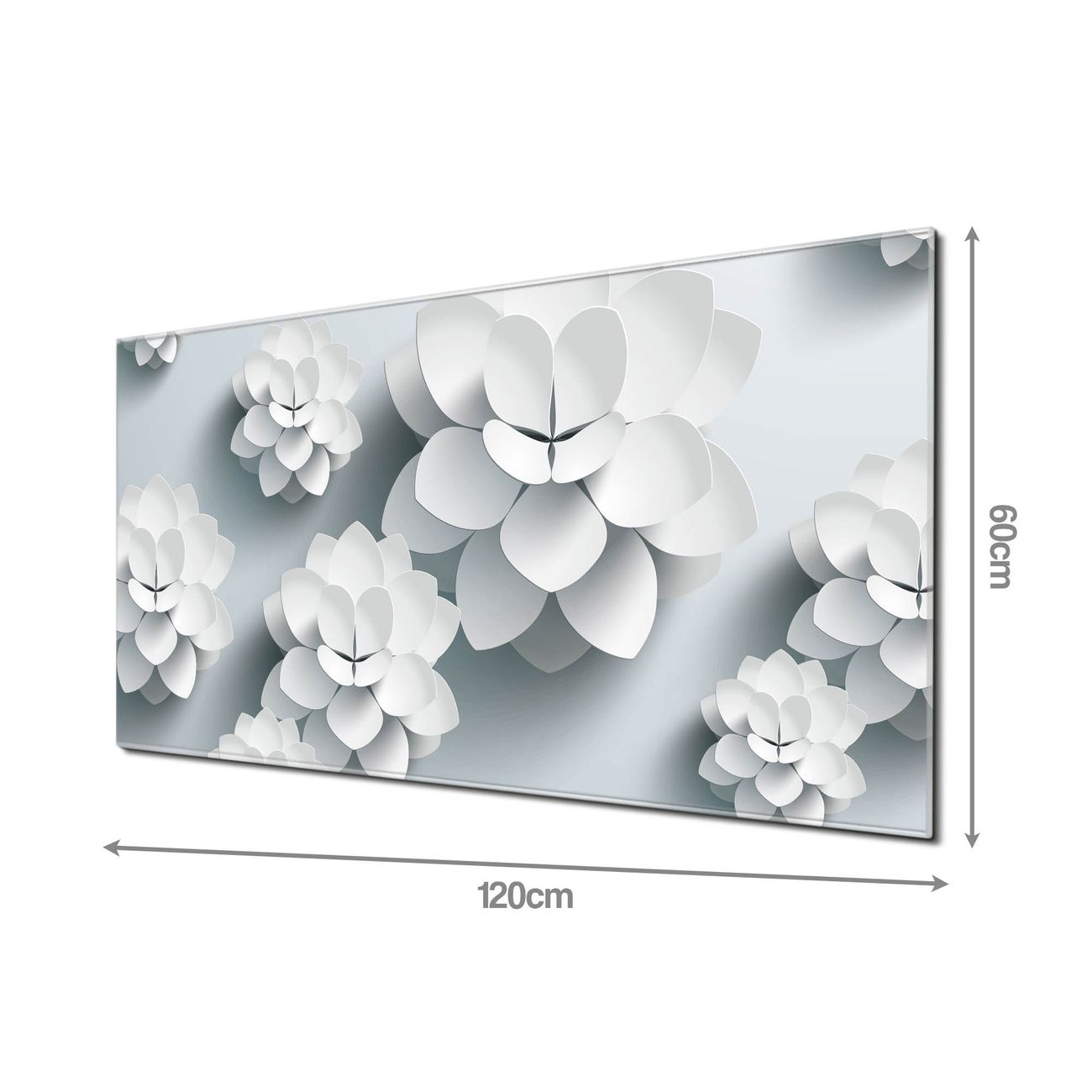 Material: 4mm Sicherheitsglas mit Metallrückwand Eigenschaften: beschreibbar, magnetisch, kratzfest Maße: 120x60x0,6cm, 10,80kg schwer Motiv Nummer 11421 Papier Lotus Zubehör: inklusive 4 Neodym-Magnete
