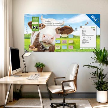 Auf der glatten Glasoberfläche lassen sich Termine, Rezepte oder Notizen ganz einfach mit Kreidestiften festhalten und rückstandslos entfernen. Starke Neodym-Magnete halten Ihre wichtigsten Erinnerungen sicher an Ort und Stelle. So entsteht Ihre ganz persönliche Ideenwand - jeden Tag neu.