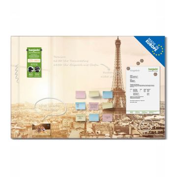 Material: 4mm Sicherheitsglas mit Metallrückwand Eigenschaften: beschreibbar, magnetisch, kratzfest Maße: 120x80x0,6cm, 14,40kg schwer Motiv Nummer 11406 Dächer Von Paris Zubehör: inklusive 4 Neodym-Magnete