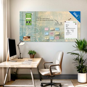 Die banjado Glas Magnettafel mit dem Motiv Motiv Patina Grün verbindet Funktionalität mit Stil. Sie ersetzt das Zettelchaos durch klare Strukturen und bringt dabei eine warme, natürliche Atmosphäre in Ihr Zuhause. Ob im Büro, in der Küche oder im Eingangsbereich - dieses Design-Board zieht Blicke an und sorgt für Ordnung mit Charakter.