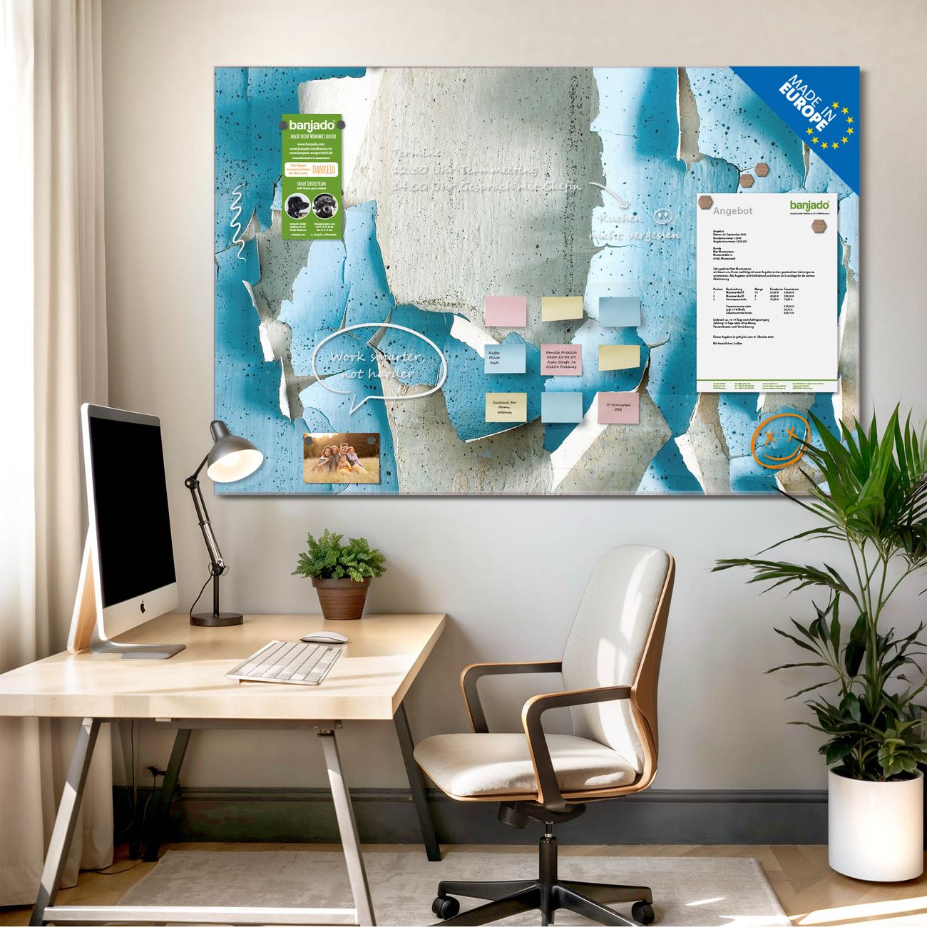 Jede Glas Magnettafel wird in unserer Werkstatt von Hand gefertigt und sorgfältig geprüft. So erhalten Sie ein echtes Qualitätsprodukt, das Funktion und Ästhetik perfekt vereint.