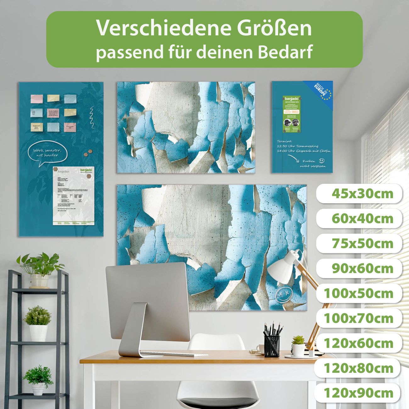 Die banjado Glas Magnettafel mit dem Motiv Motiv Blätternde Farbe verbindet Funktionalität mit Stil. Sie ersetzt das Zettelchaos durch klare Strukturen und bringt dabei eine warme, natürliche Atmosphäre in Ihr Zuhause. Ob im Büro, in der Küche oder im Eingangsbereich - dieses Design-Board zieht Blicke an und sorgt für Ordnung mit Charakter.