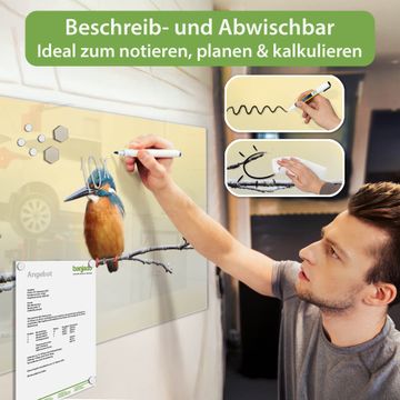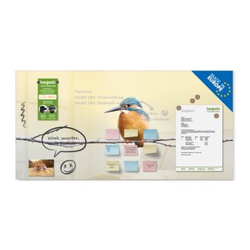 Material: 4mm Sicherheitsglas mit Metallrückwand Eigenschaften: beschreibbar, magnetisch, kratzfest Maße: 100x50x0,6cm, 7,50kg schwer Motiv Nummer 10457 Pause Zubehör: inklusive 4 Neodym-Magnete
