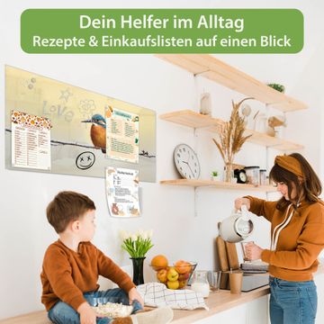 Auf der glatten Glasoberfläche lassen sich Termine, Rezepte oder Notizen ganz einfach mit Kreidestiften festhalten und rückstandslos entfernen. Starke Neodym-Magnete halten Ihre wichtigsten Erinnerungen sicher an Ort und Stelle. So entsteht Ihre ganz persönliche Ideenwand - jeden Tag neu.