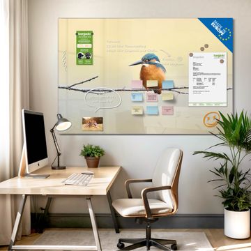 Material: 4mm Sicherheitsglas mit Metallrückwand Eigenschaften: beschreibbar, magnetisch, kratzfest Maße: 120x80x0,6cm, 14,40kg schwer Motiv Nummer 10457 Pause Zubehör: inklusive 4 Neodym-Magnete