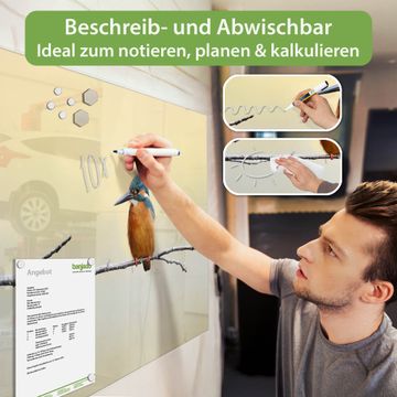 Gefertigt aus gehärtetem Sicherheitsglas mit einer magnetischen Rückwand aus Stahl überzeugt diese Magnettafel durch Stabilität und Langlebigkeit. Die Oberfläche bleibt dauerhaft brillant und pflegeleicht, selbst bei täglicher Nutzung.