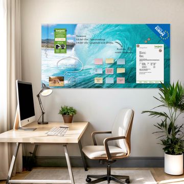 Die banjado Glas Magnettafel mit dem Motiv Motiv Perfekte Welle verbindet Funktionalität mit Stil. Sie ersetzt das Zettelchaos durch klare Strukturen und bringt dabei eine warme, natürliche Atmosphäre in Ihr Zuhause. Ob im Büro, in der Küche oder im Eingangsbereich - dieses Design-Board zieht Blicke an und sorgt für Ordnung mit Charakter.