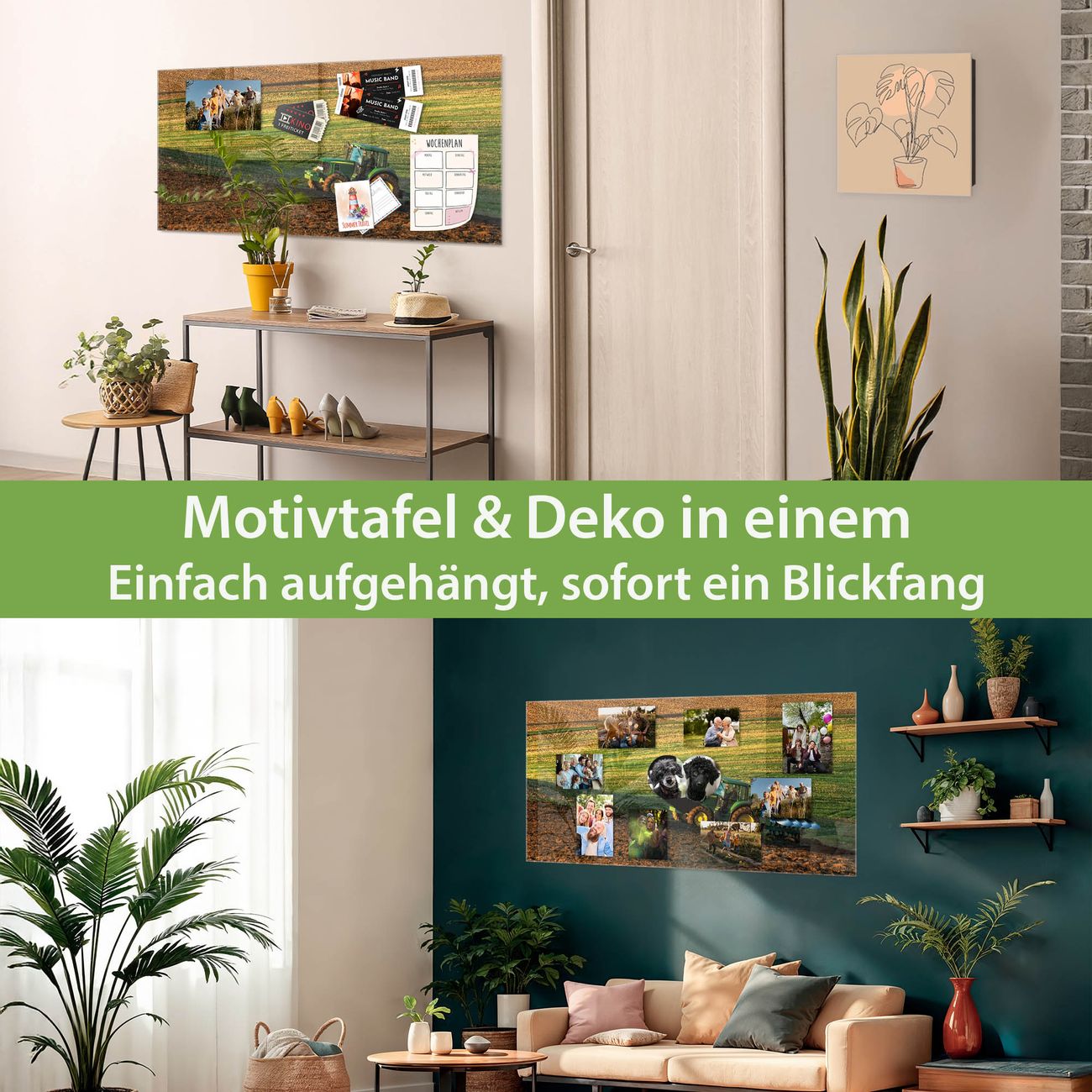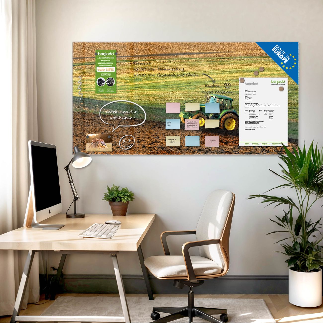 Die banjado Glas Magnettafel mit dem Motiv Motiv Pflügen verbindet Funktionalität mit Stil. Sie ersetzt das Zettelchaos durch klare Strukturen und bringt dabei eine warme, natürliche Atmosphäre in Ihr Zuhause. Ob im Büro, in der Küche oder im Eingangsbereich - dieses Design-Board zieht Blicke an und sorgt für Ordnung mit Charakter.