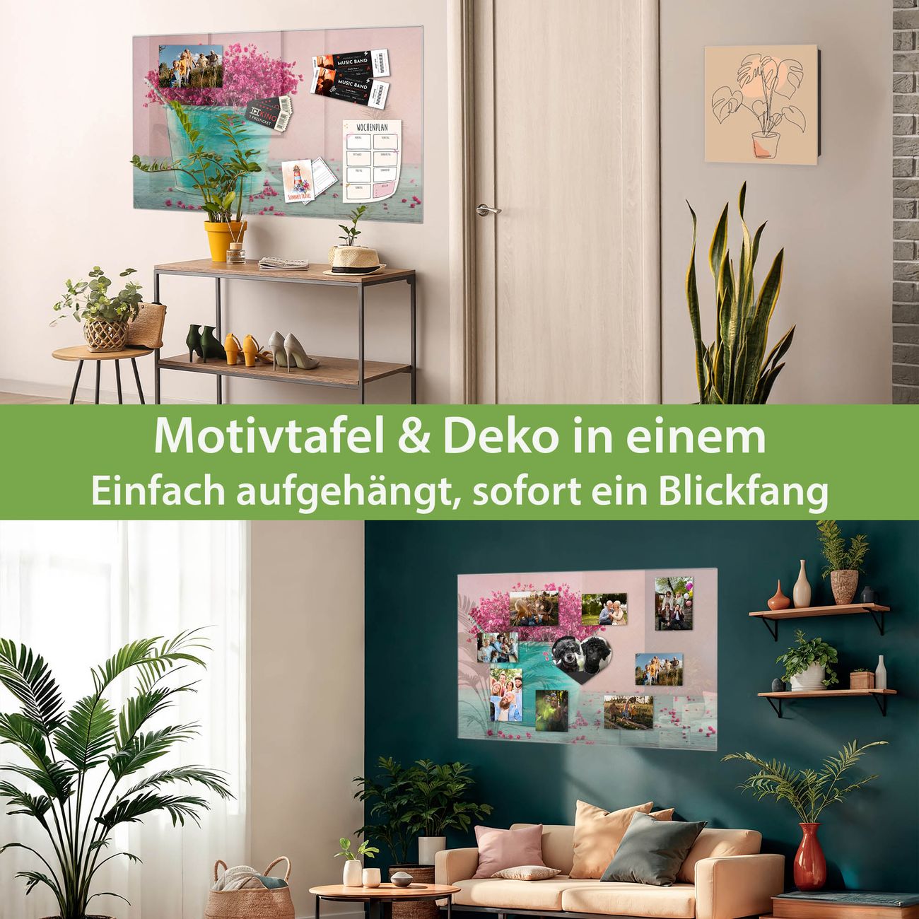 Dank der flachen Bauweise wirkt die Magnetwand fast schwebend an der Wand. Sie können sie mit Montagekleber elegant befestigen oder mit einem passenden Set klassisch verschrauben - beides sorgt für sicheren Halt und eine dezente Optik.