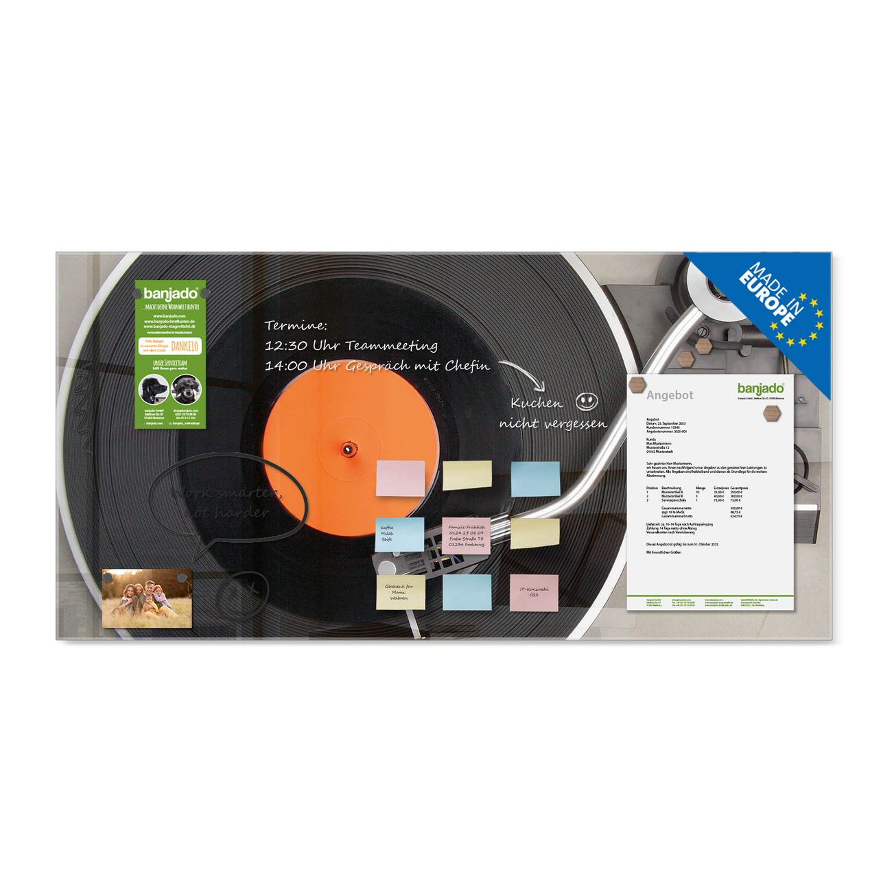 Glas Magnettafel im Querformat Motiv Plattenspieler