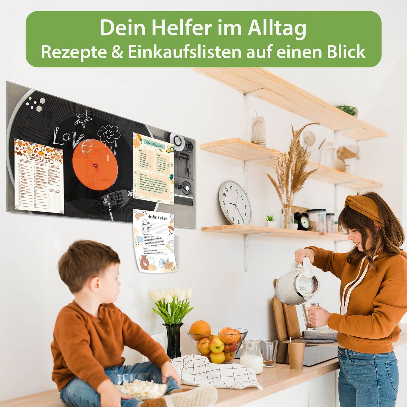 Ein Stück Design, das Ihren Alltag organisiert. Schreiben, heften, inspirieren - alles an einem Ort. Qualität, die man spürt. Montage leicht gemacht. Handwerk mit Herz - veredelt in Sachsen. Einzigartiges Design mit Motiv Motiv Plattenspieler Beschreibbare Glasoberfläche, leicht zu reinigen Starke Magnetkraft durch Stahlrückwand Inklusive 4 Neodym-Magneten Flexible Montageoptionen Handveredelt in Sachsen - Qualität, die bleibt