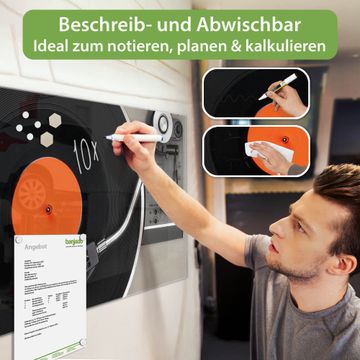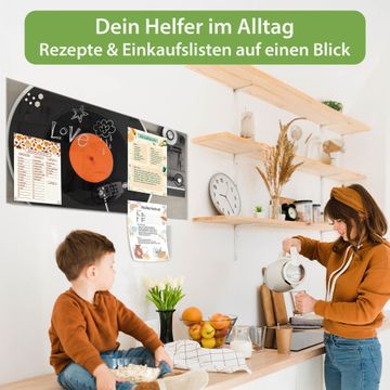 Auf der glatten Glasoberfläche lassen sich Termine, Rezepte oder Notizen ganz einfach mit Kreidestiften festhalten und rückstandslos entfernen. Starke Neodym-Magnete halten Ihre wichtigsten Erinnerungen sicher an Ort und Stelle. So entsteht Ihre ganz persönliche Ideenwand - jeden Tag neu.