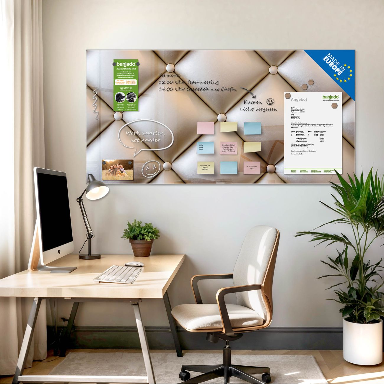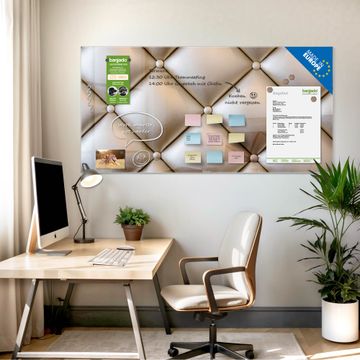Die banjado Glas Magnettafel mit dem Motiv Motiv Polster Bronze verbindet Funktionalität mit Stil. Sie ersetzt das Zettelchaos durch klare Strukturen und bringt dabei eine warme, natürliche Atmosphäre in Ihr Zuhause. Ob im Büro, in der Küche oder im Eingangsbereich - dieses Design-Board zieht Blicke an und sorgt für Ordnung mit Charakter.