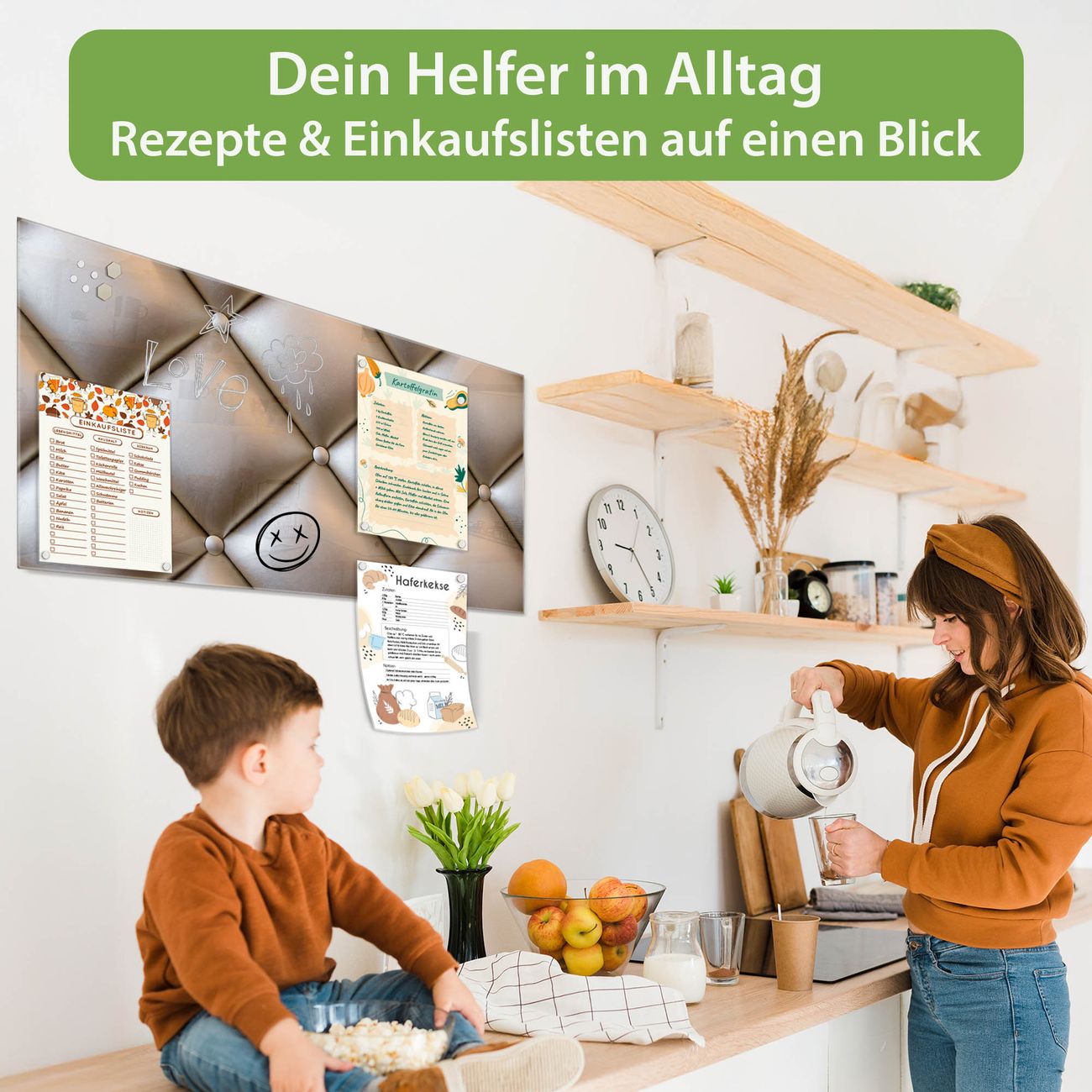 Auf der glatten Glasoberfläche lassen sich Termine, Rezepte oder Notizen ganz einfach mit Kreidestiften festhalten und rückstandslos entfernen. Starke Neodym-Magnete halten Ihre wichtigsten Erinnerungen sicher an Ort und Stelle. So entsteht Ihre ganz persönliche Ideenwand - jeden Tag neu.