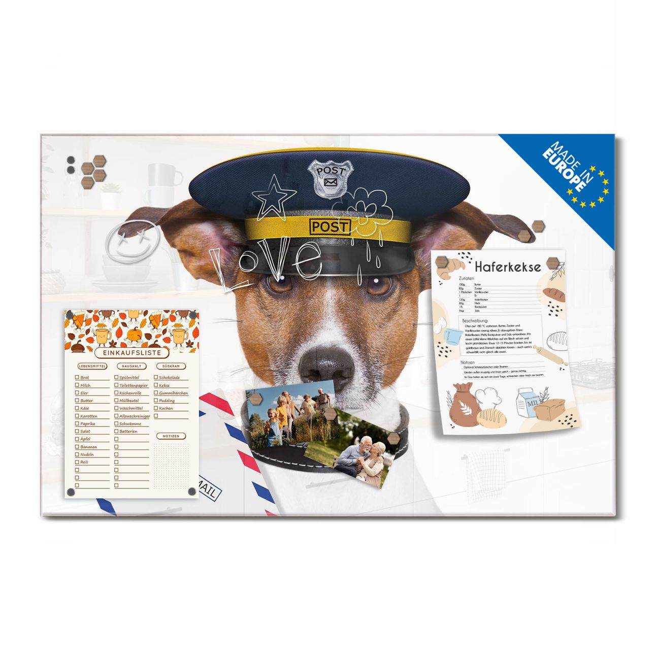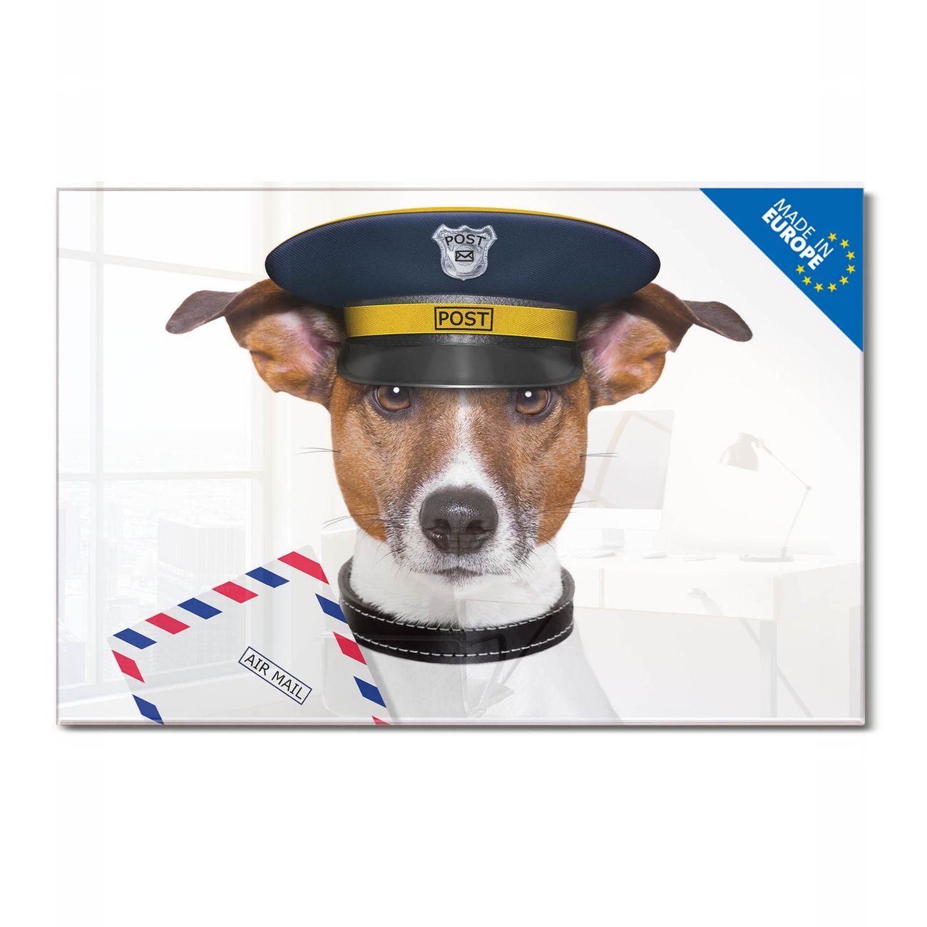 Glas Magnettafel im Querformat Motiv Postbote Jack Russel