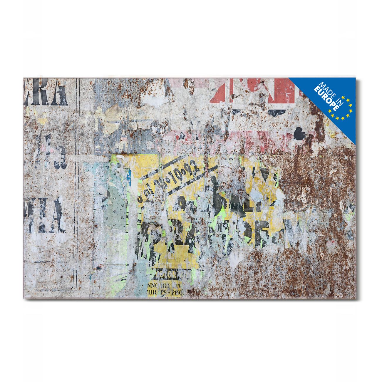 Material: 4mm Sicherheitsglas mit Metallrückwand Eigenschaften: beschreibbar, magnetisch, kratzfest Maße: 90x60x0,6cm, 8,10kg schwer Motiv Nummer 12607 Posterwand Zubehör: inklusive 4 Neodym-Magnete