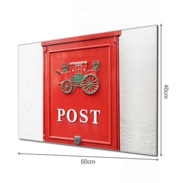 Material  4mm Sicherheitsglas mit Metallrückwand Eigenschaften  beschreibbar, magnetisch, kratzfest Maße  60x40x0,6cm, 3,6kg schwer Motiv  Nummer 10485 Postkasten Nostalgie Zubehör  inklusive 4 Neodym-Magnete