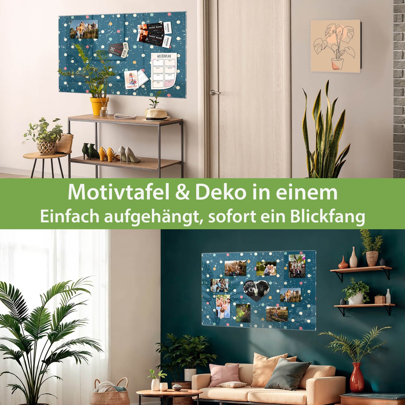 Die banjado Glas Magnettafel mit dem Motiv Motiv Punkte auf Blau verbindet Funktionalität mit Stil. Sie ersetzt das Zettelchaos durch klare Strukturen und bringt dabei eine warme, natürliche Atmosphäre in Ihr Zuhause. Ob im Büro, in der Küche oder im Eingangsbereich - dieses Design-Board zieht Blicke an und sorgt für Ordnung mit Charakter.
