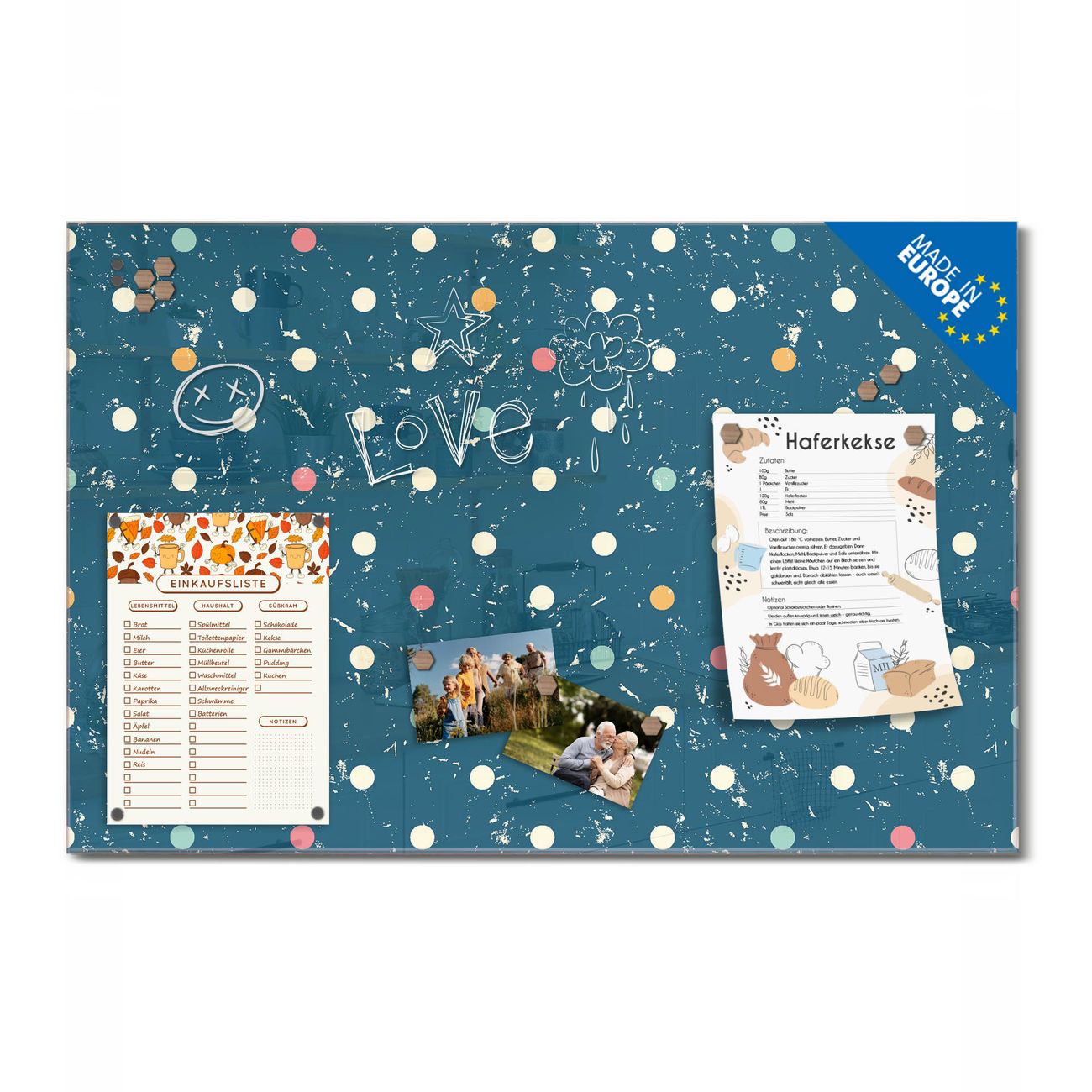 Glas Magnettafel im Querformat Motiv Punkte auf Blau