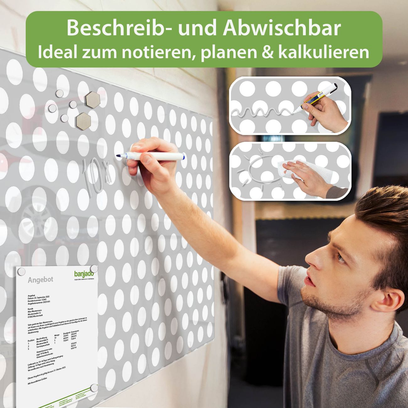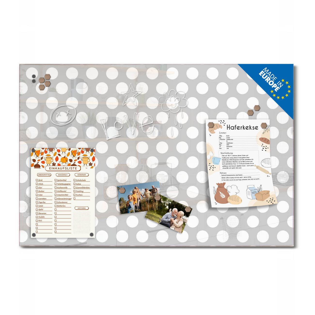 Glas Magnettafel im Querformat Motiv Punkte Grau