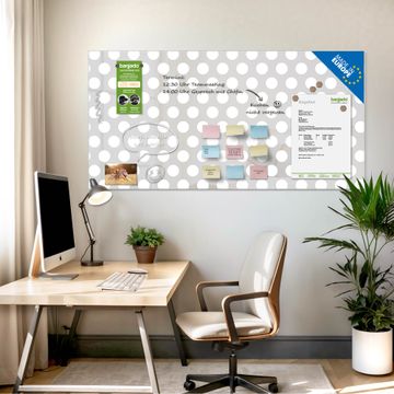 Die banjado Glas Magnettafel mit dem Motiv Motiv Punkte Grau verbindet Funktionalität mit Stil. Sie ersetzt das Zettelchaos durch klare Strukturen und bringt dabei eine warme, natürliche Atmosphäre in Ihr Zuhause. Ob im Büro, in der Küche oder im Eingangsbereich - dieses Design-Board zieht Blicke an und sorgt für Ordnung mit Charakter.