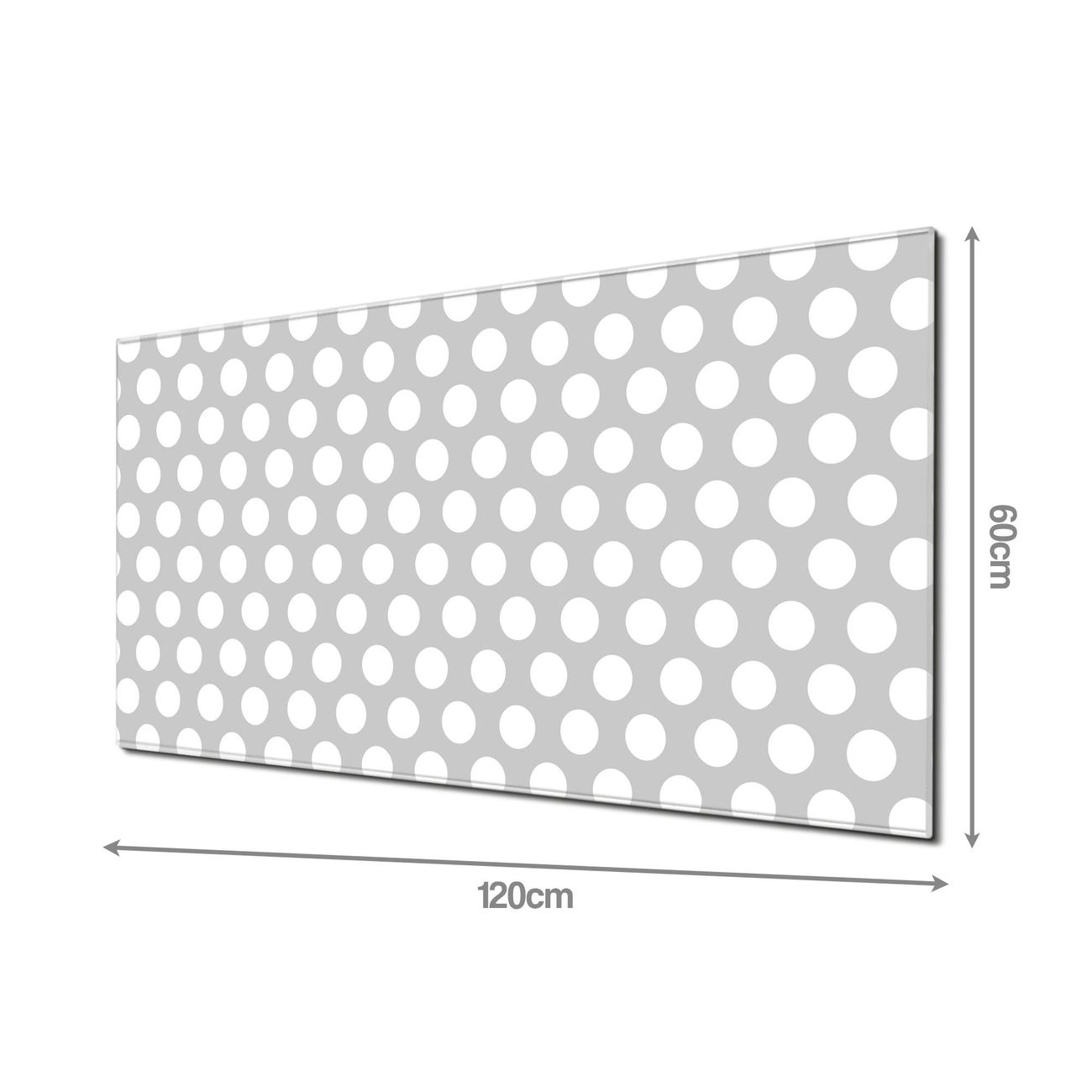 Material: 4mm Sicherheitsglas mit Metallrückwand Eigenschaften: beschreibbar, magnetisch, kratzfest Maße: 120x60x0,6cm, 10,80kg schwer Motiv Nummer 10589 Punkte Grau Zubehör: inklusive 4 Neodym-Magnete