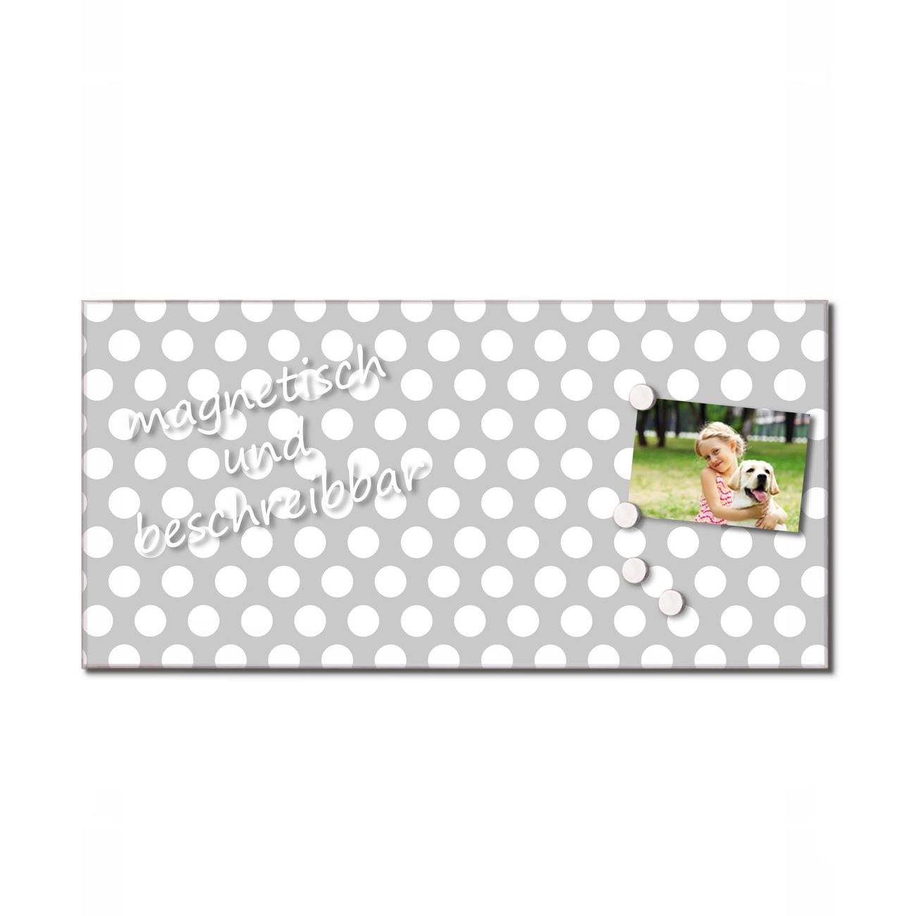 Glas Magnettafel im Querformat Motiv Punkte Grau