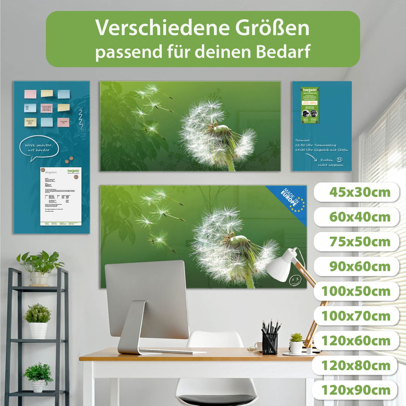 Jede Glas Magnettafel wird in unserer Werkstatt von Hand gefertigt und sorgfältig geprüft. So erhalten Sie ein echtes Qualitätsprodukt, das Funktion und Ästhetik perfekt vereint.?? Warum banjado?