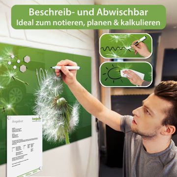 Die banjado Glas Magnettafel mit dem Motiv Motiv Pusteblume verbindet Funktionalität mit Stil. Sie ersetzt das Zettelchaos durch klare Strukturen und bringt dabei eine warme, natürliche Atmosphäre in Ihr Zuhause. Ob im Büro, in der Küche oder im Eingangsbereich - dieses Design-Board zieht Blicke an und sorgt für Ordnung mit Charakter.