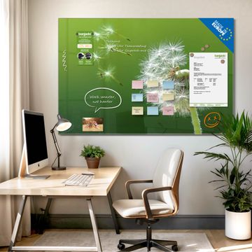 Die banjado Glas Magnettafel mit dem Motiv Motiv Pusteblume verbindet Funktionalität mit Stil. Sie ersetzt das Zettelchaos durch klare Strukturen und bringt dabei eine warme, natürliche Atmosphäre in Ihr Zuhause. Ob im Büro, in der Küche oder im Eingangsbereich - dieses Design-Board zieht Blicke an und sorgt für Ordnung mit Charakter.