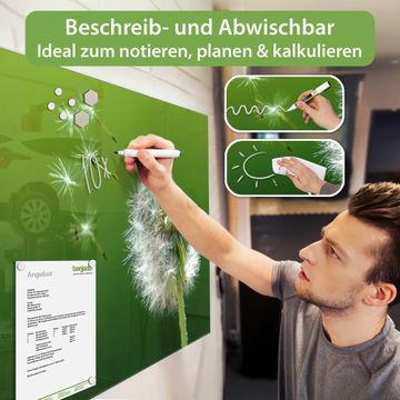 Auf der glatten Glasoberfläche lassen sich Termine, Rezepte oder Notizen ganz einfach mit Kreidestiften festhalten und rückstandslos entfernen. Starke Neodym-Magnete halten Ihre wichtigsten Erinnerungen sicher an Ort und Stelle. So entsteht Ihre ganz persönliche Ideenwand - jeden Tag neu.