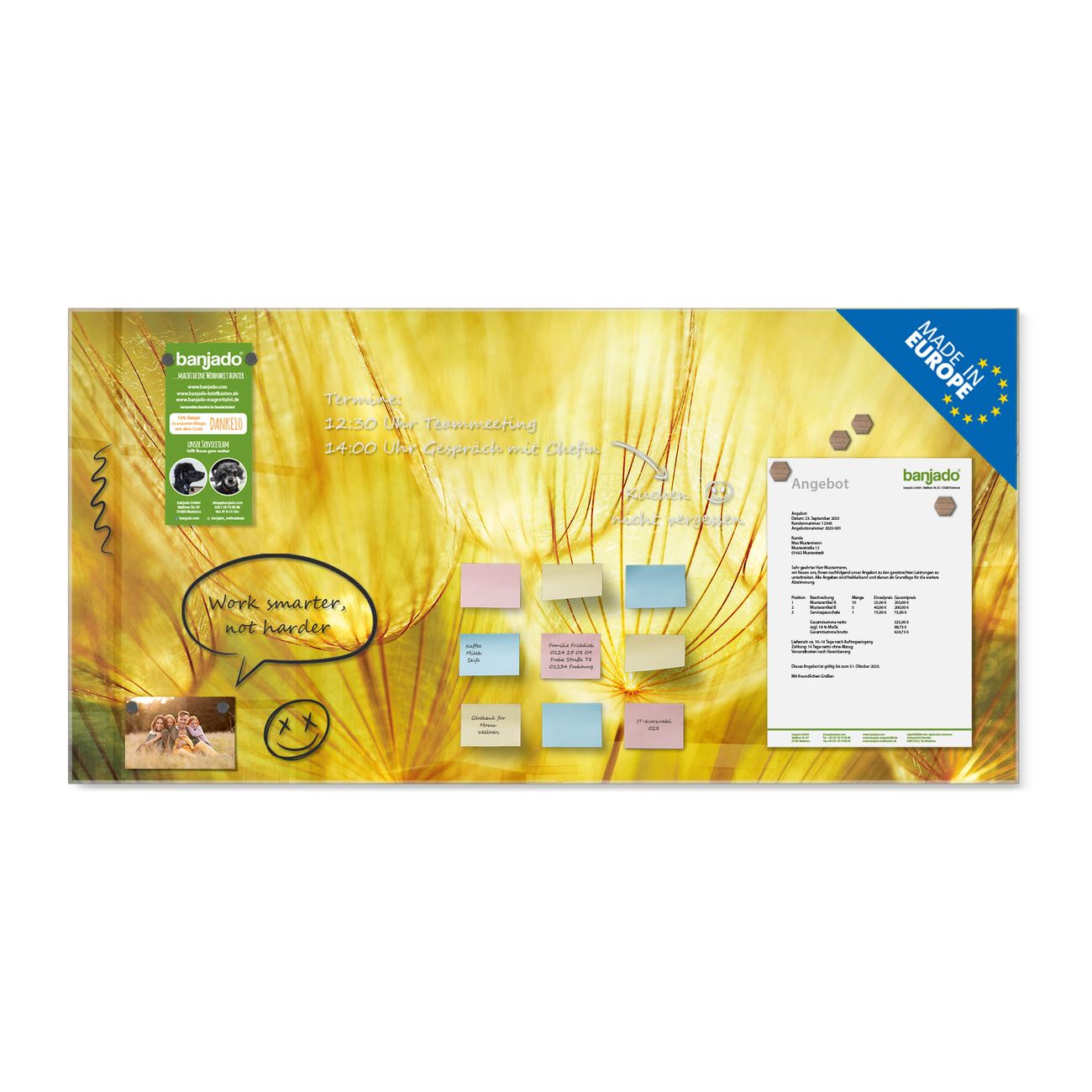 Glas Magnettafel im Querformat Motiv Pusteblumen Gold