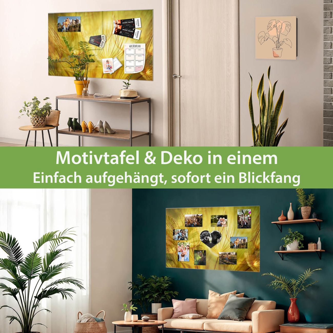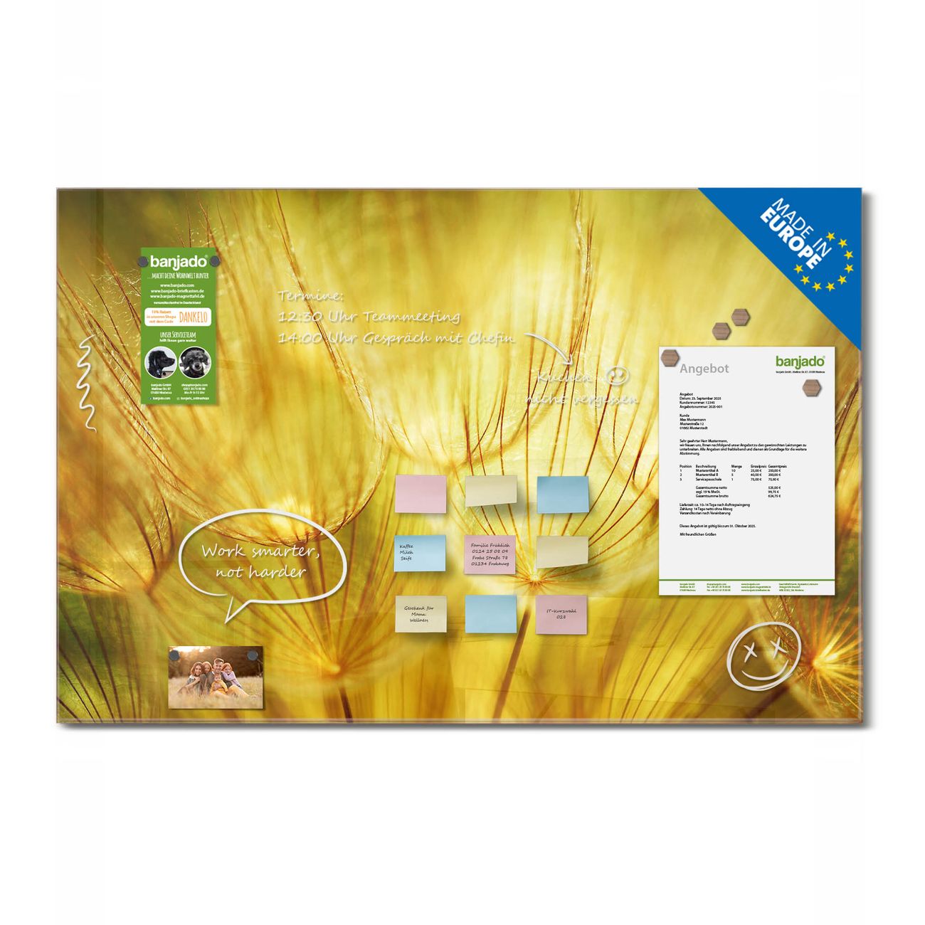 Glas Magnettafel im Querformat Motiv Pusteblumen Gold