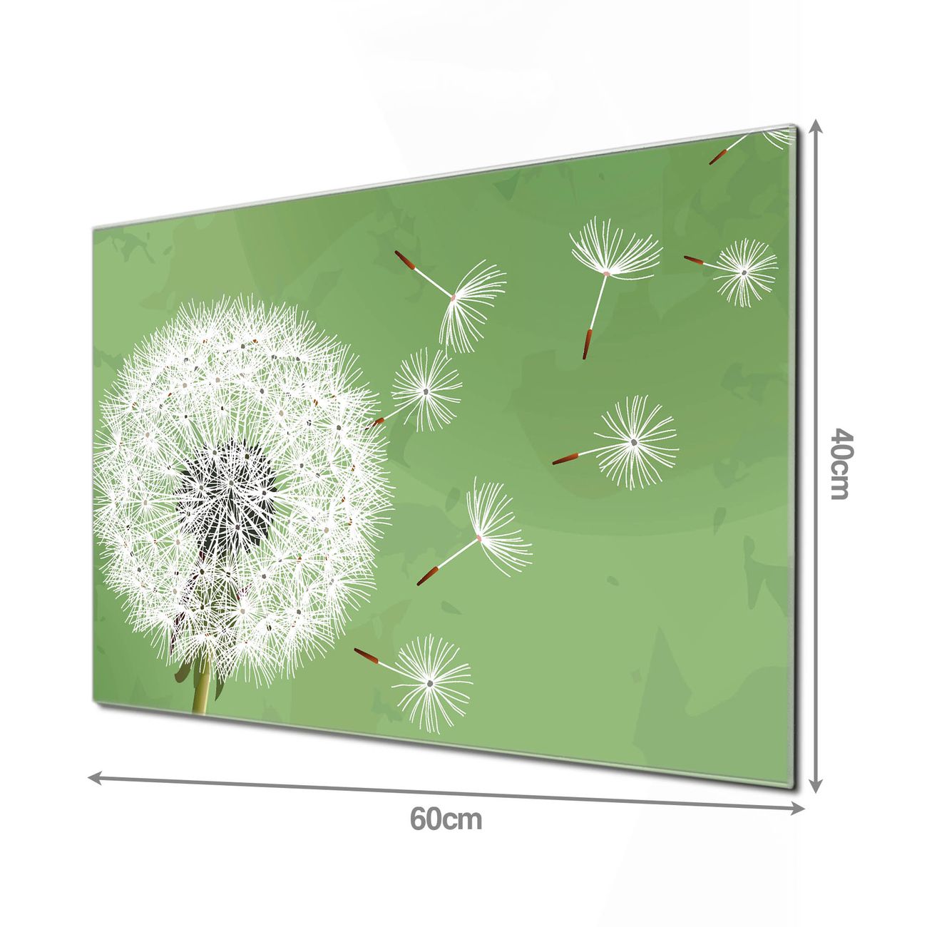 Material: 4mm Sicherheitsglas mit Metallrückwand Eigenschaften: beschreibbar, magnetisch, kratzfest Maße: 60x40x0,6cm, 3,6kg schwer Motiv Nummer 10804 Pusteblume 3 Zubehör: inklusive 4 Neodym-Magnete