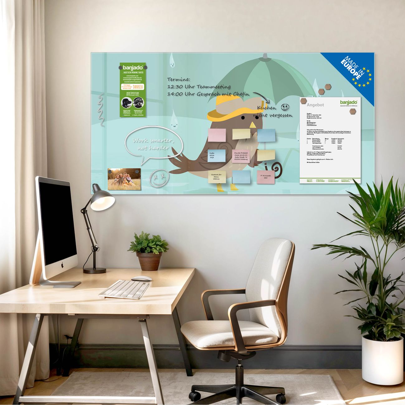 Jede Glas Magnettafel wird in unserer Werkstatt von Hand gefertigt und sorgfältig geprüft. So erhalten Sie ein echtes Qualitätsprodukt, das Funktion und Ästhetik perfekt vereint.?? Warum banjado?