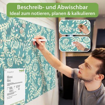 Die banjado Glas Magnettafel mit dem Motiv Motiv Rankenornament verbindet Funktionalität mit Stil. Sie ersetzt das Zettelchaos durch klare Strukturen und bringt dabei eine warme, natürliche Atmosphäre in Ihr Zuhause. Ob im Büro, in der Küche oder im Eingangsbereich - dieses Design-Board zieht Blicke an und sorgt für Ordnung mit Charakter.