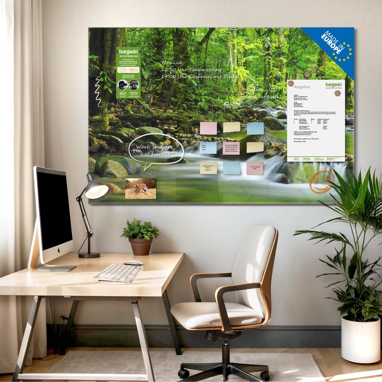 Die banjado Glas Magnettafel mit dem Motiv Motiv Rauschender Bach verbindet Funktionalität mit Stil. Sie ersetzt das Zettelchaos durch klare Strukturen und bringt dabei eine warme, natürliche Atmosphäre in Ihr Zuhause. Ob im Büro, in der Küche oder im Eingangsbereich - dieses Design-Board zieht Blicke an und sorgt für Ordnung mit Charakter.