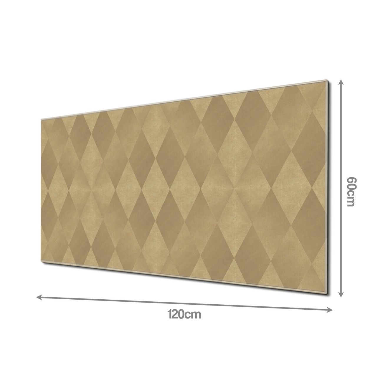 Material: 4mm Sicherheitsglas mit Metallrückwand Eigenschaften: beschreibbar, magnetisch, kratzfest Maße: 120x60x0,6cm, 10,80kg schwer Motiv Nummer 10806 Rauten Metall Zubehör: inklusive 4 Neodym-Magnete