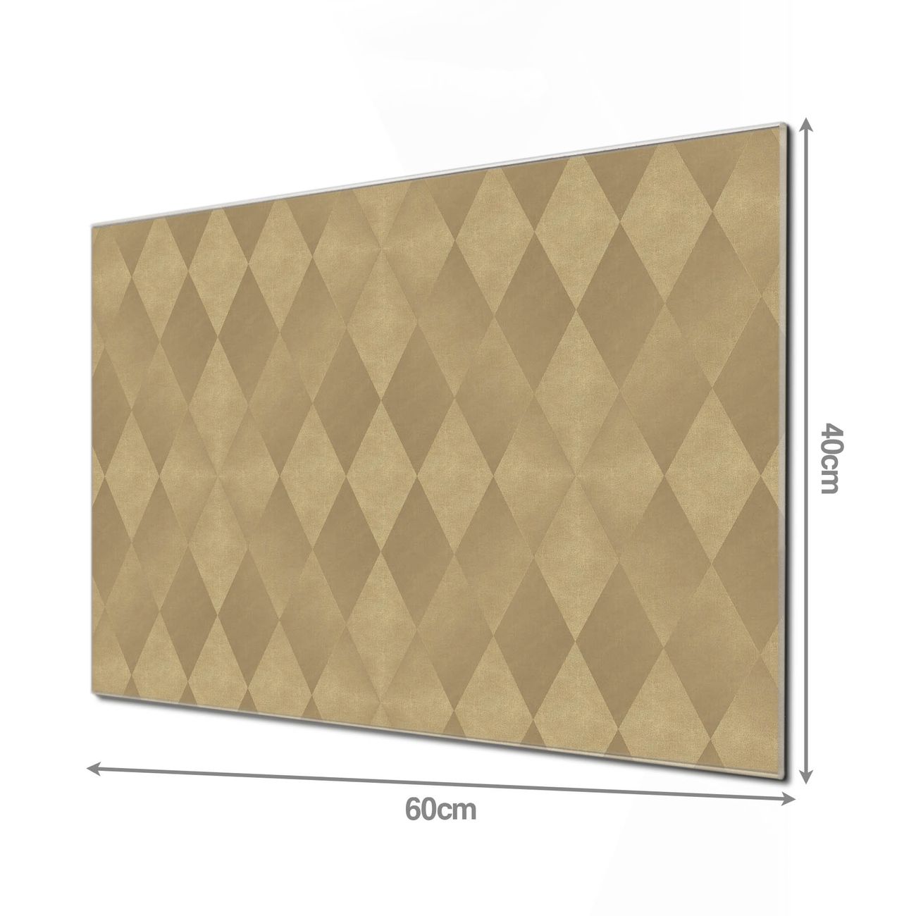 Material: 4mm Sicherheitsglas mit Metallrückwand Eigenschaften: beschreibbar, magnetisch, kratzfest Maße: 60x40x0,6cm, 3,6kg schwer Motiv Nummer 10806 Rauten Metall Zubehör: inklusive 4 Neodym-Magnete