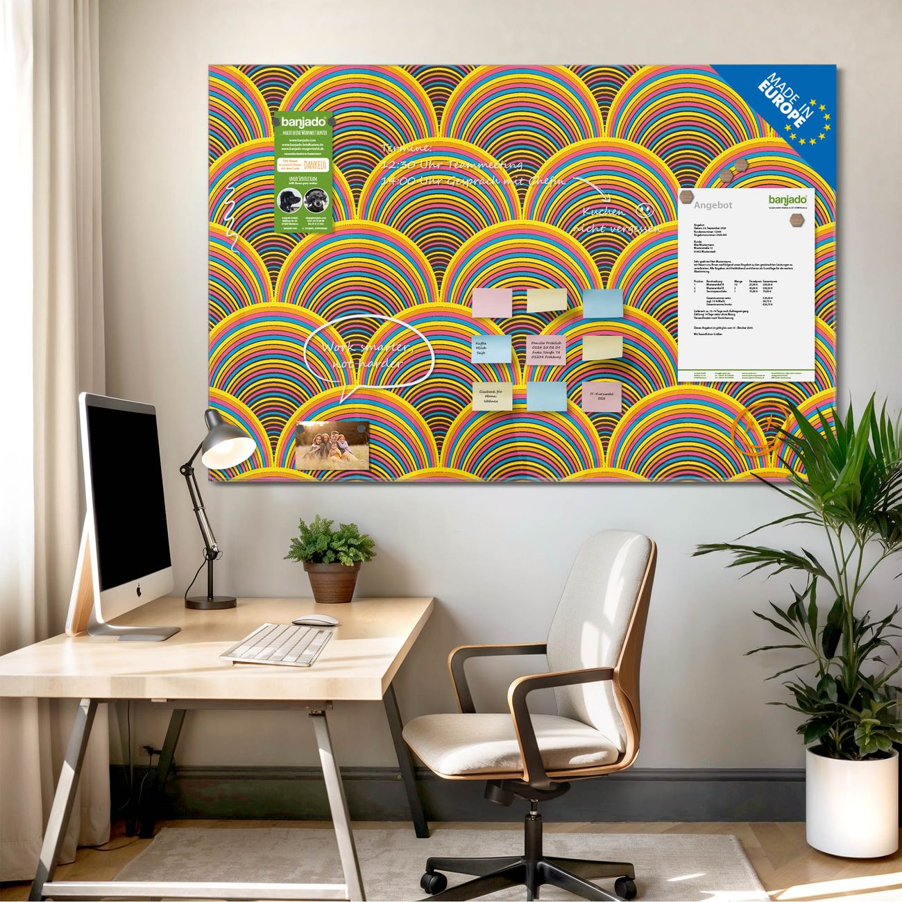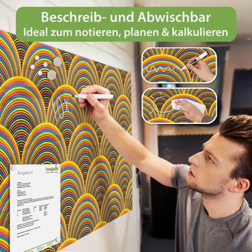 Die banjado Glas Magnettafel im Querformat mit Motiv Motiv Regenbögen bringt Ordnung in Ihr Zettelchaos. Fotos, Termine, Notizen oder Rezepte lassen Sich hier stilvoll mit Magneten ordnen, so behalten Sie alles Wichtige im Blick. Das Memoboard aus Glas ist beschreibbar und wird Ihnen bereits mit 4 Neodym-Magneten geliefert. Das Format bietet Ihnen ausreichend Platz um alle wichtigen Informationen im Blick zu behalten.